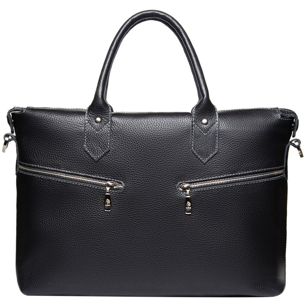 МОДЕЛЬ СУМКИ ДЛЯ НОУТБУКА ИЗ ЧЕРНОЙ КОЖИ С ДВУМЯ ПРОРЕЗНЫМИ КАРМАНАМИ НА МОЛНИЯХ – ВЫБОР ТЕХ, КТО В ТРЕНДЕ.