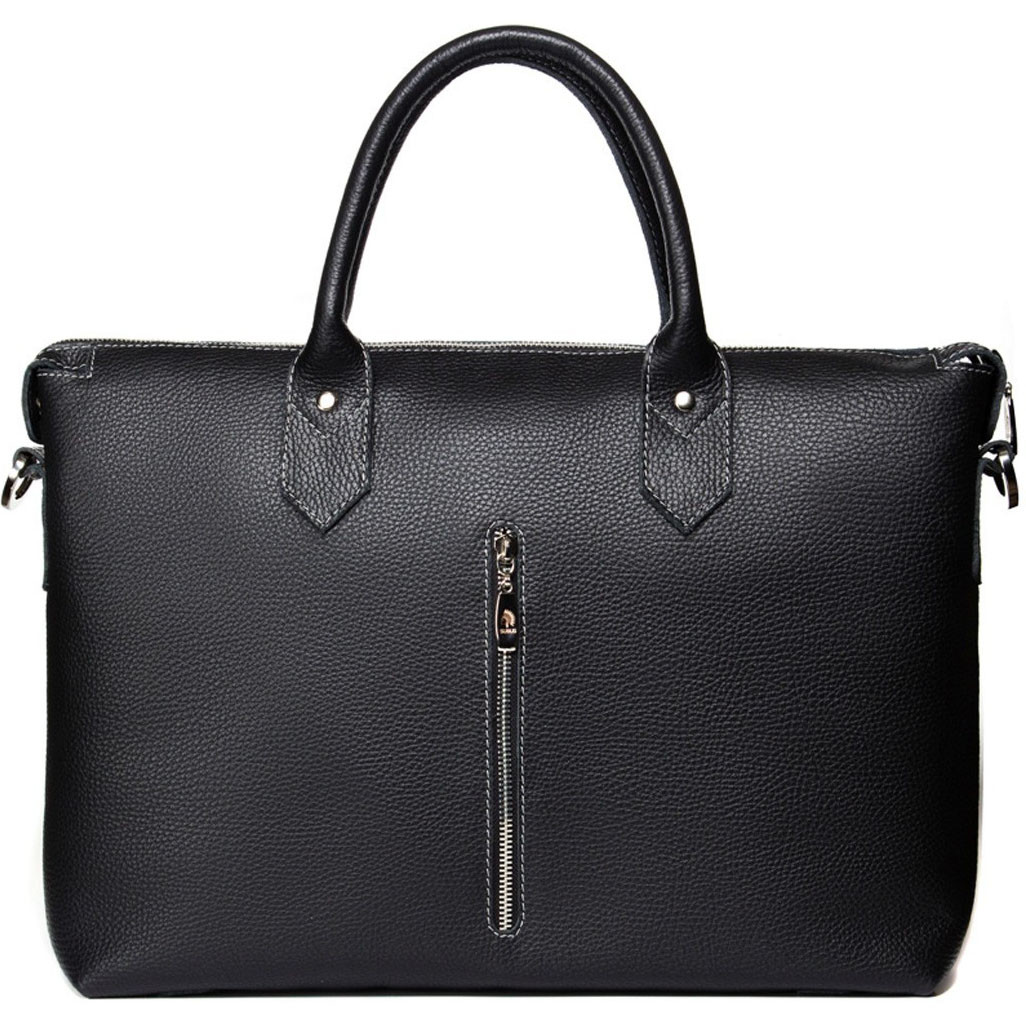 Исполнение в ахроматическом колере – черном цвете делает этот практичный аксессуар поистине универсальным. Актуальные габариты изделия не перегружают Ваш образ и позволяют осуществлять ношение портативного компьютера стандартных размеров максимально комфортно. Что может быть лучше, чем тандем безупречного стиля и несомненной практичности, актуальный в нашем интенсивном каждодневном ритме? Ответ на поверхности – дуэт находит свое воплощение в деловой сумке нашего производства.