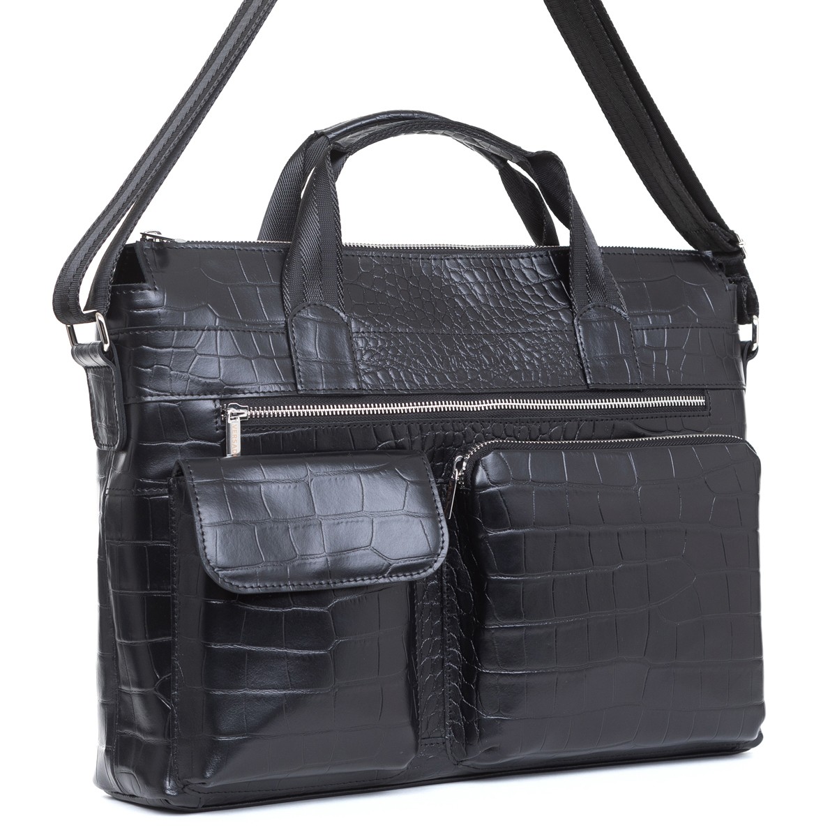 Внутри уплотненный карман для ноутбука 15’’, подвесной карман на молнии и накладной двойной карман. Изделие имеет две короткие ручки из ленты ременной с обтяжкой под руку и регулируемый по длине плечевой ремень из ленты ременной.